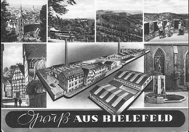 Hier eine Karte von 1955 mit dem zentralen Thema der Stricker-Werke in Blfd. Brackwede.
