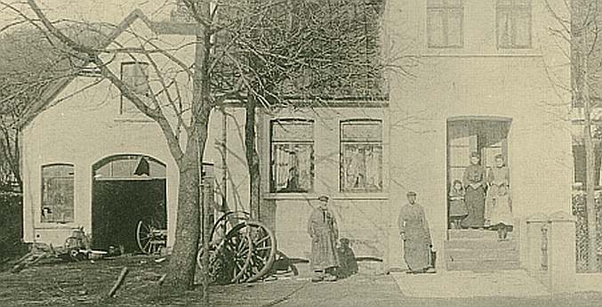 Ein Bild aus dem Jahre 1900 vom Haus des Schmiedes und Fuhrunternehmers (später Spedition) Strothmann.