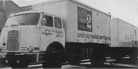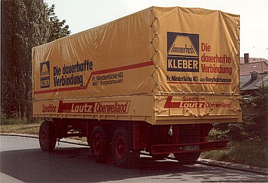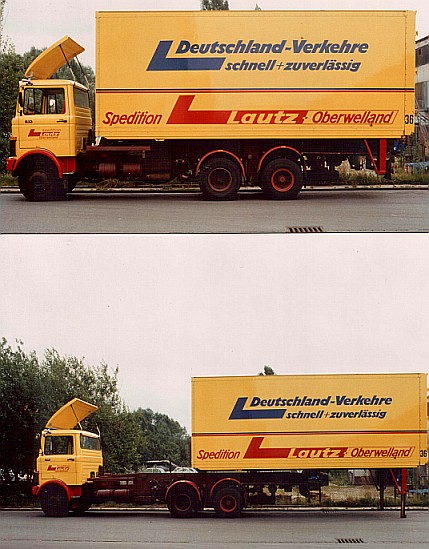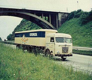 man beachte die schmale Fahrbahn und die abgerundete Form des Aufliegers