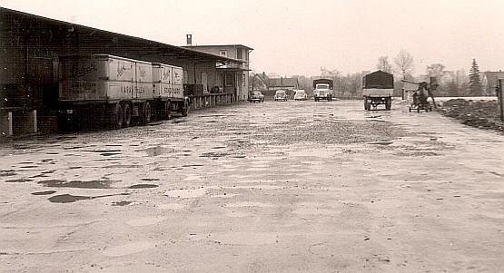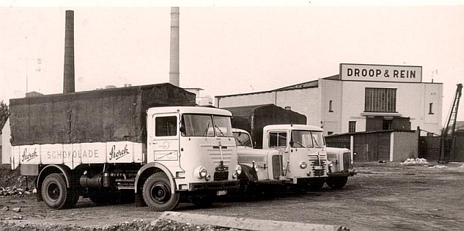 Fahrzeuge auf dem Gelände der Fa. Droop & Rein in den 1950er Jahren. Dieses Gelände lag damals dort, wo heute die Röhre